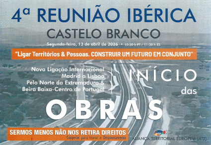 A 4ª Reunião Ibérica da Aliança Territorial Europeia (ATE) realizou-se esta segunda-feira, 13 de abril, no Salão Nobre da Câmara Municipal de Castelo Branco, e teve como principais objetivos: reforçar a reivindicação pela construção do IC31 em perfil de autoestrada; afirmar este corredor como eixo estratégico para o desenvolvimento, atração de investimento, criação de emprego e valorização turística; e consolidar a cooperação transfronteiriça entre o Norte da Extremadura espanhola e a Beira Baixa.